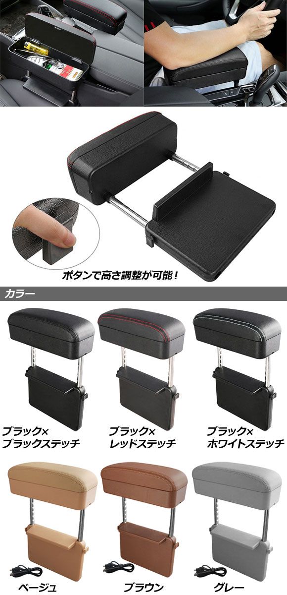 アームレスト ブラック×ブラックステッチ 収納ボックス付き 汎用 シートの隙間に差し込むだけ!小物をスッキリ整頓! AP-AS881-BKBK