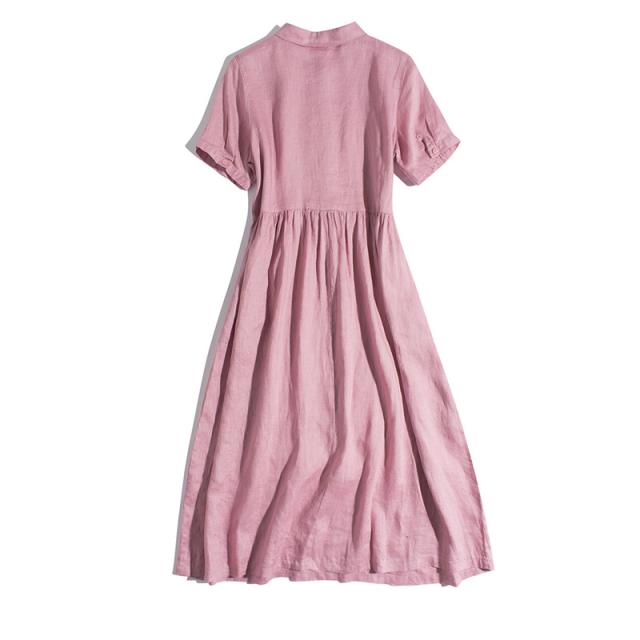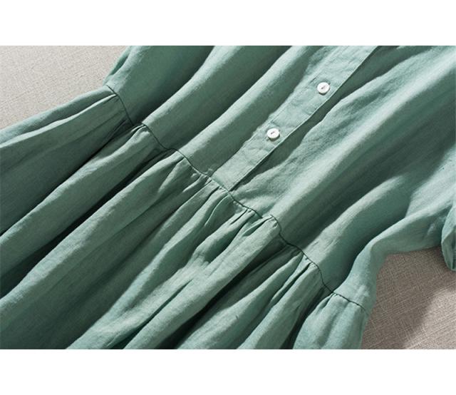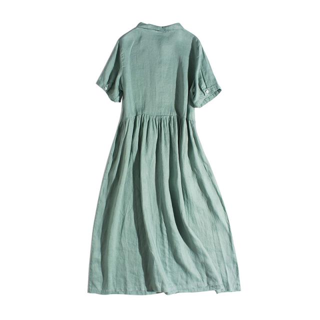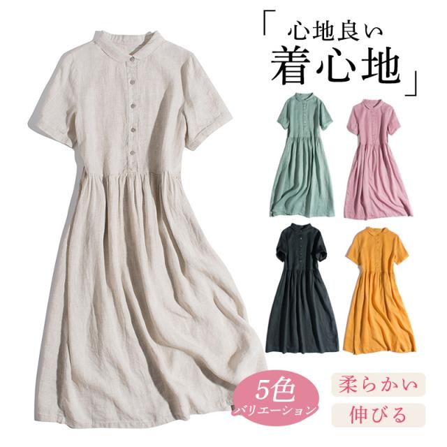 シャツワンピース マキシ丈 レディース リネンワンピース 半袖 着痩せ 体型カバー ハイウエスト ゆったり ポケット付き 春夏 き