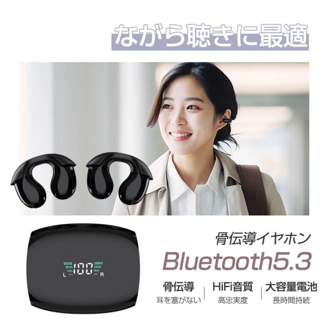 骨伝導イヤホン Bluetooth5.3 完全ワイヤレスイヤホン イヤーカフ型 ワイヤレスヘッドセット 耳を塞がない 耳挟み式 HiFi高音質 【PL保険加入済み製品・安心】