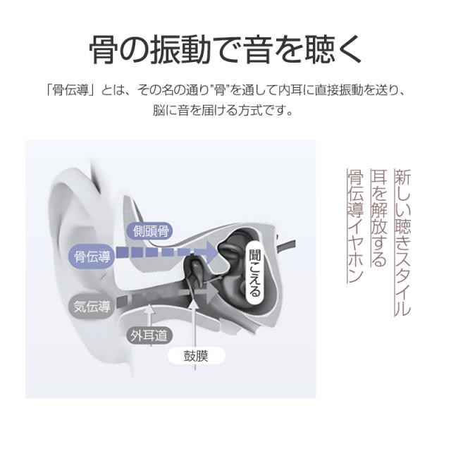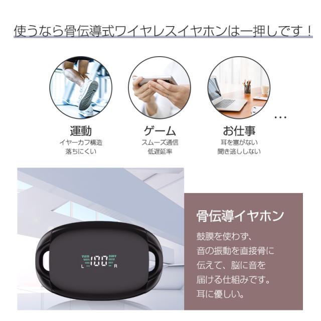 【耳を塞がずに音楽を楽しめる】骨伝導技術を採用し、耳や鼓膜を通さずに、音が頭蓋骨を通して直接に脳に届きます。そして、イヤーカフ型で耳に挟んで装着して、一般の骨伝導イヤホンと違い、圧迫感がありません。また、耳を塞がないため、周囲の音が聞こえやすく、音楽を楽しみながら、通勤通学、スポーツ、運転、会話中などの場面でも役に立ちます。