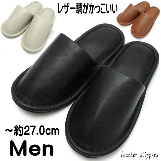 スリッパ レザー調 ビニールレザー シンプル 高級感 メンズ カラー 無地 L 通年 来客トイレ 事務所 ルームシューズ ギフト 父の日