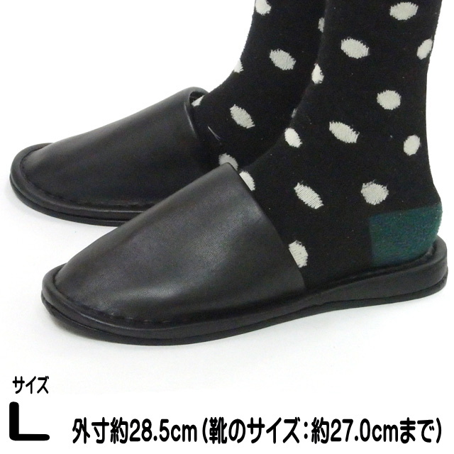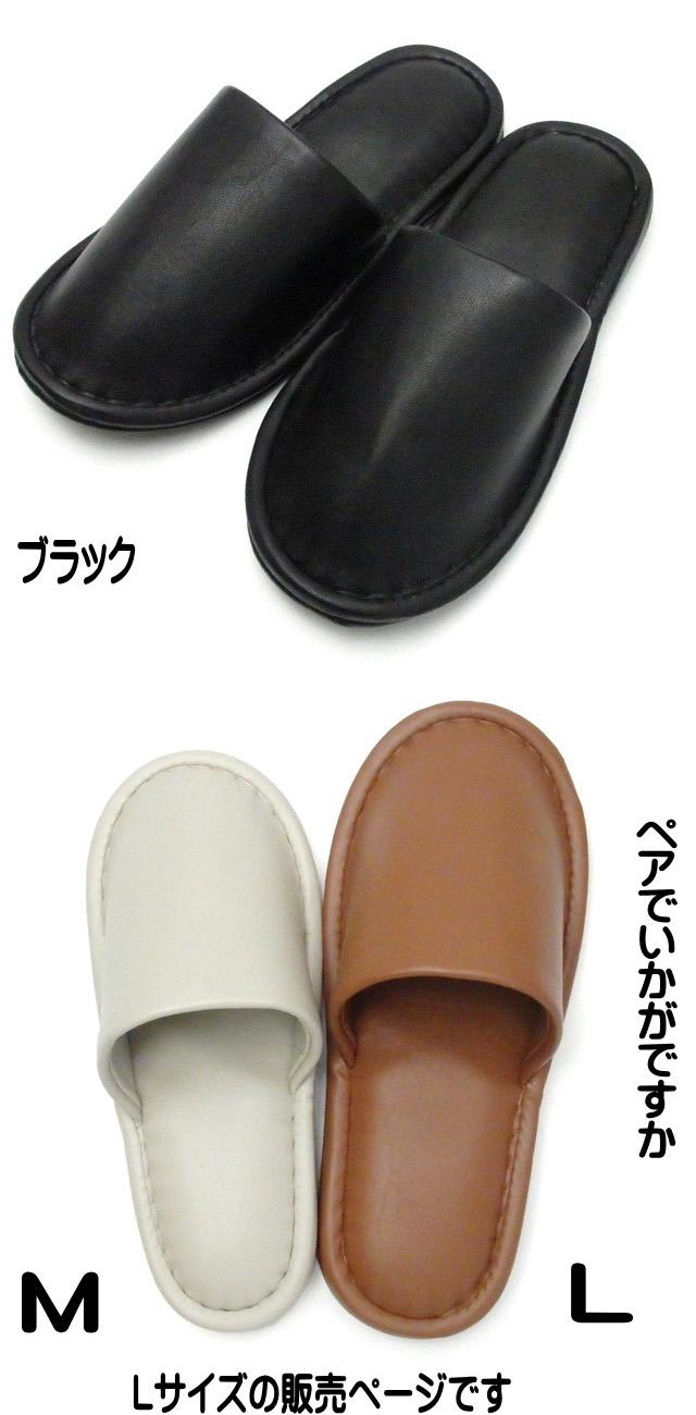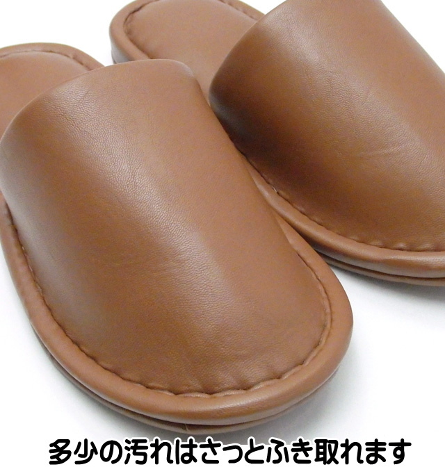 高級感のある レザー調の シンプルな 前詰まり 外縫いタイプの スリッパ です。