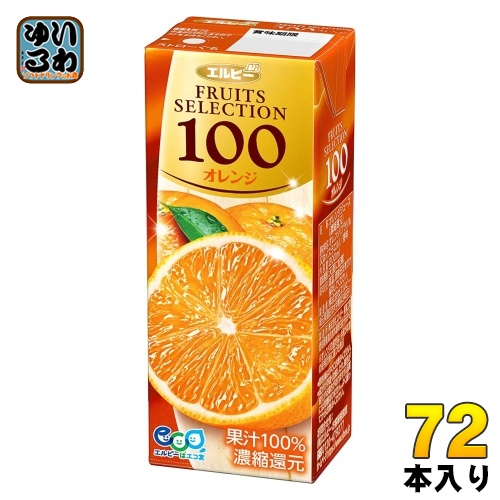 エルビー フルーツセレクション オレンジ100 200ml 紙パック 72本 (24本入×3 まとめ買い) オレンジジュース オレンジ果汁100%