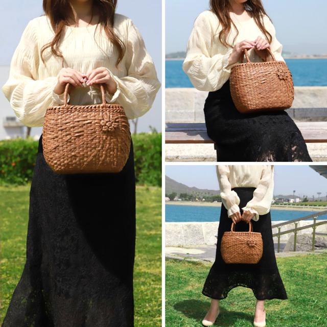 山葡萄 かごバッグ 1年保証付き 内布付き 山ぶどう やまぶどう 蔓 天然素材 カゴバッグ 籠バッグ バスケット レディース 大人 おしゃれ 綺麗 花編み流し 固定ハンドル 手提げ ハンドメイド 手作り 母の日