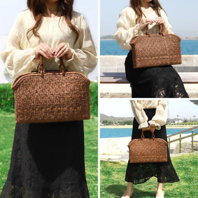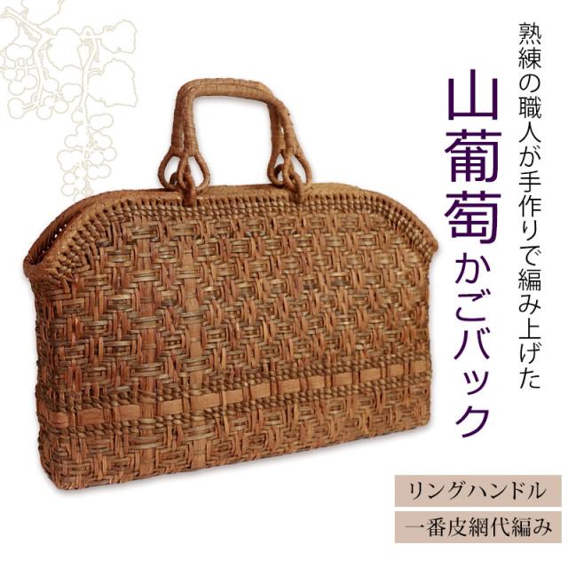 山葡萄 かごバッグ 1年保証付き 内布付き 山ぶどう やまぶどう 蔓 天然素材 カゴバッグ 籠バッグ バスケット レディース 大人 おしゃれ 綺麗 一番皮網代編み リングハンドル 手提げ ハンドメイド 手作り 母の日