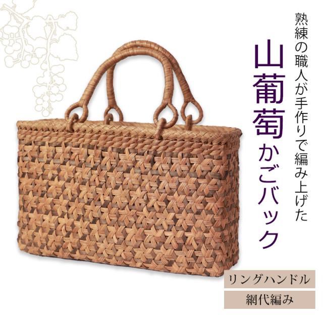 山葡萄 かごバッグ 1年保証付き 内布付き 山ぶどう やまぶどう 蔓 天然素材 カゴバッグ 籠バッグ バスケット レディース 大人 おしゃれ 綺麗 網代編み リングハンドル 手提げ ハンドメイド 手作り 母の日