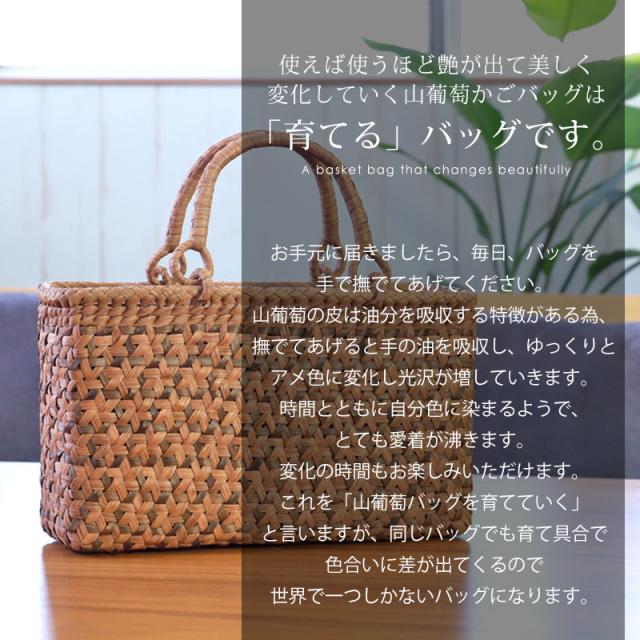 使えば使うほど艶が出て美しく変化していく山葡萄かごバッグは「育てる」バッグです。