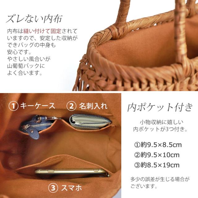 山葡萄 かごバッグ 1年保証付き 内布付き 山ぶどう やまぶどう 蔓 天然素材 カゴバッグ 籠バッグ バスケット レディース 大人 おしゃれ 綺麗 透かし編み 固定ハンドル 手提げ ハンドメイド 手作り 母の日