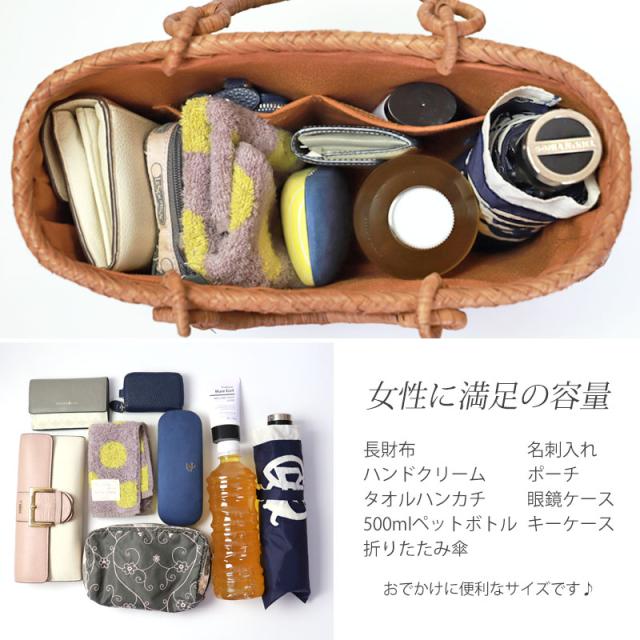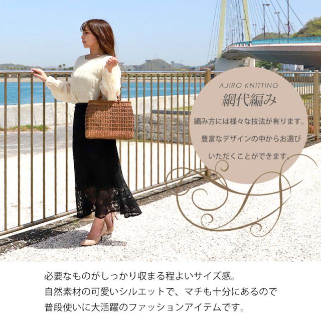 必要なものがしっかり収まる程よいサイズ感。自然素材の可愛いシルエットで、マチも十分にあるので普段使いに大活躍のファッションアイテムです。季節を問わず通年使え、着物にもカジュアルにも似合います。