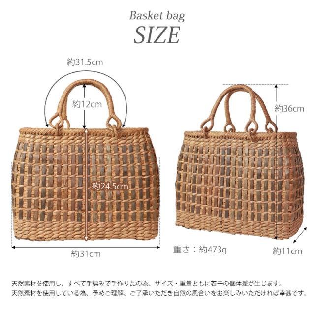 | サイズ(約) | 幅31×マチ11×高さ24.5cm 取っ手を含む高さ36cm 重さ:473g ※サイズ、重さは多少誤差が生じます。 |