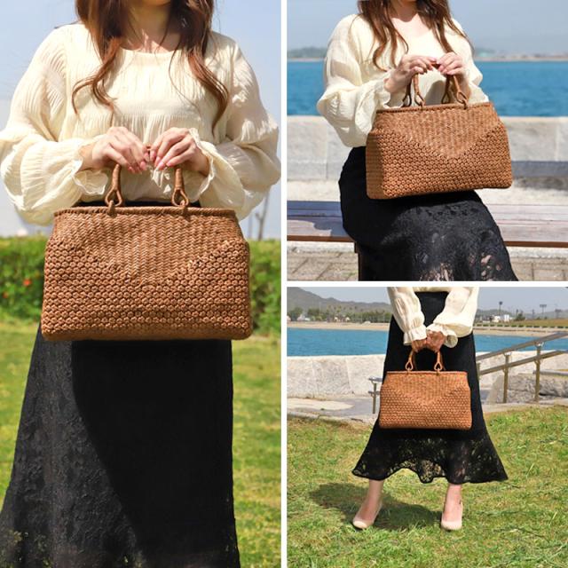 必要なものがしっかり収まる程よいサイズ感。自然素材の可愛いシルエットで、マチも十分にあるので普段使いに大活躍のファッションアイテムです。季節を問わず通年使え、着物にもカジュアルにも似合います。