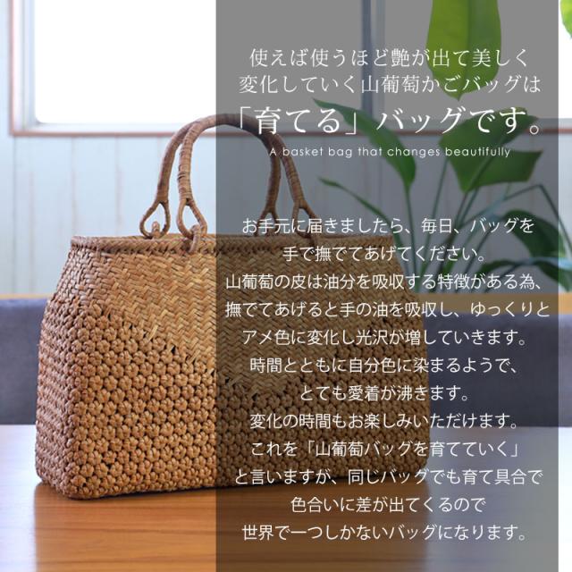 使えば使うほど艶が出て美しく変化していく山葡萄かごバッグは「育てる」バッグです。
