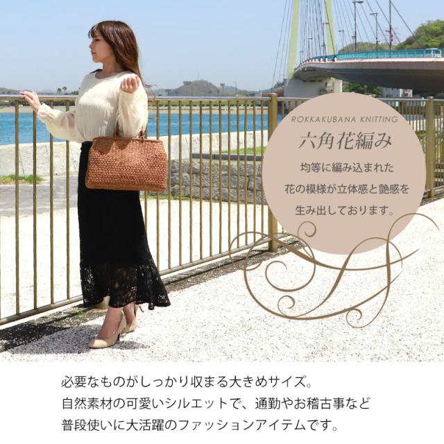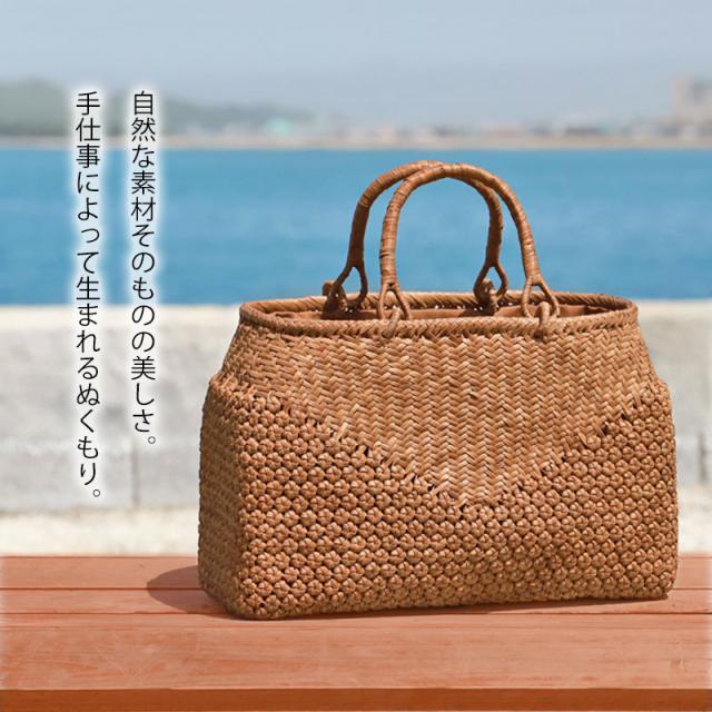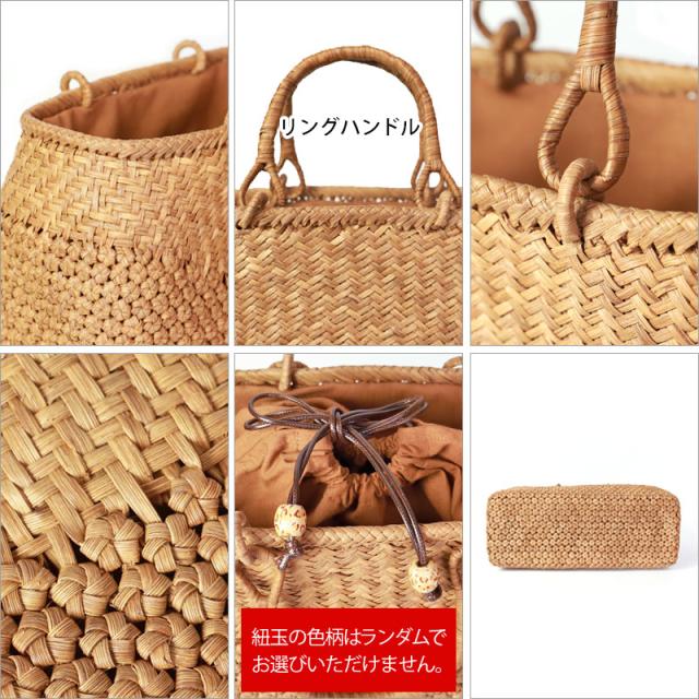 | 仕様 | 網代六角花編み リングハンドル 柿渋染め内布(巾着 内ポケット付き) 取り扱い説明書 保証書付き |