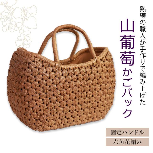 山葡萄 かごバッグ 1年保証付き 内布付き 山ぶどう やまぶどう 蔓 天然素材 カゴバッグ 籠バッグ バスケット レディース 大人 おしゃれ 綺麗 六角花編み 固定ハンドル 手提げ ハンドメイド 手作り 母の日