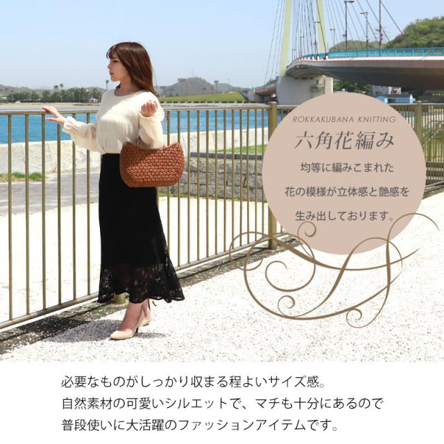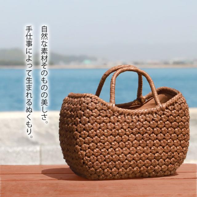 | 仕様 | 六角花編み 固定ハンドル 柿渋染め内布(かぶせ付 内ポケット付き) 取り扱い説明書 保証書付き |