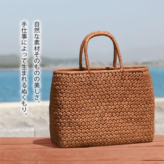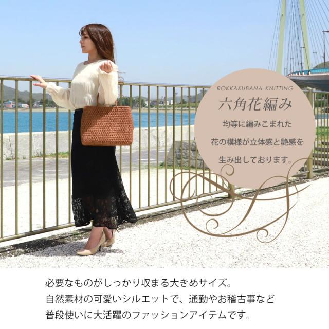 六角花編み 固定ハンドル 柿渋染め内布(かぶせ付 内ポケット付き) 取り扱い説明書 保証書付き |
