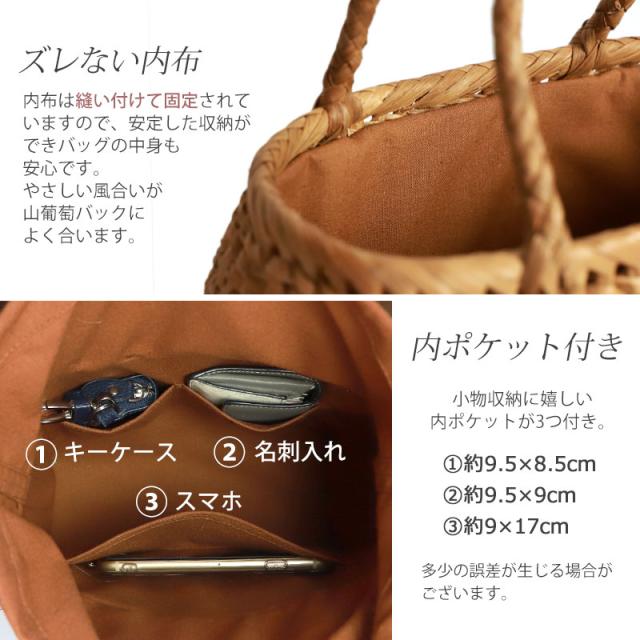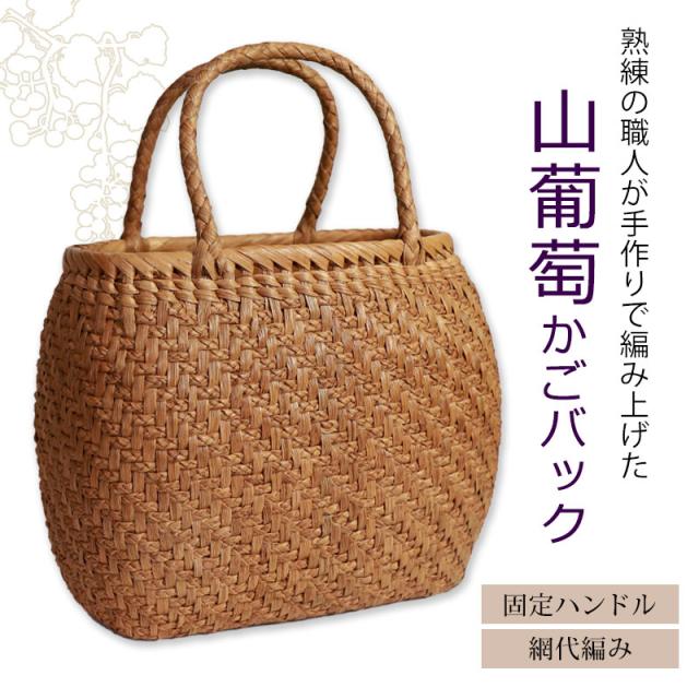 山葡萄 かごバッグ 1年保証付き 内布付き 山ぶどう やまぶどう 蔓 天然素材 カゴバッグ 籠バッグ バスケット レディース 大人 おしゃれ 綺麗 網代編み 固定ハンドル 手提げ ハンドメイド 手作り 母の日