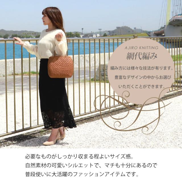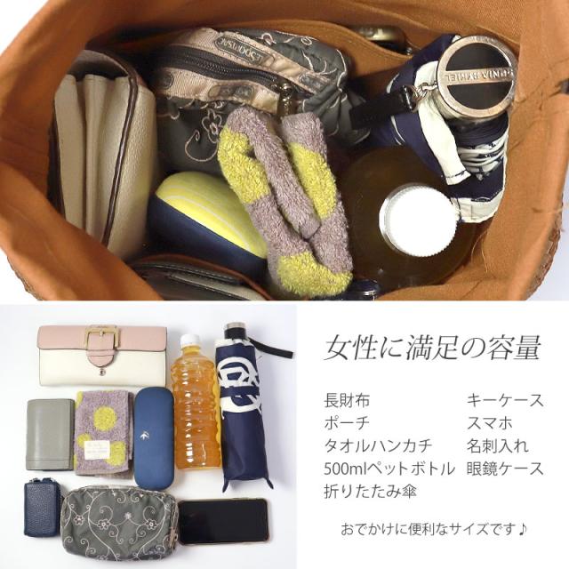 必要なものがしっかり収まる程よいサイズ感。自然素材の可愛いシルエットで、マチも十分にあるので普段使いに大活躍のファッションアイテムです。季節を問わず通年使え、着物にもカジュアルにも似合います。