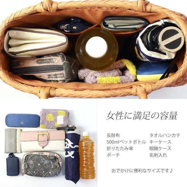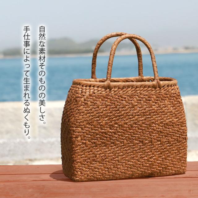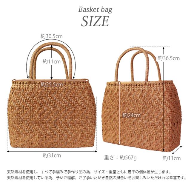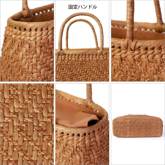| 仕様 | 網代編み 固定ハンドル 柿渋染め内布(かぶせ付 内ポケット付き) 取り扱い説明書 保証書付き |