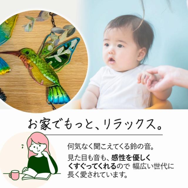 | 商品の説明 | 風が吹くと、優しい音色が聞こえてくるこれからの季節とてもおすすめのハチドリ型風鈴。 ハチドリは「親愛」「信頼」のモチーフとされています。 春の訪れとともに幸福をもたらす幸せの鳥は、大切な人への贈り物にも大人気◎ 何気なく聞こえてくる鈴の音。 見た目も音も、感性を優しくくすぐってくれるので 幅広い世代に長く愛されています。 1つはドアに、もう1つは窓に。 なんてこともできちゃう嬉しい2点セット。 なかよく一緒に飾っていても、とってもおしゃれに。 ハンドメイドならではの1つ1つデザインや色味が少しずつ違う手作りの風合い。 色鮮やかであたたかみのある人気のデザインです◎ 和室洋室、ドアや窓にお店に。 手作りのあたたかみと洗練されたきれいな音は、あらゆるシーンで馴染みます◎ |