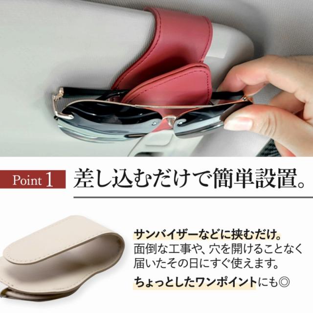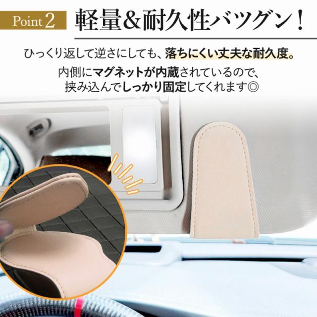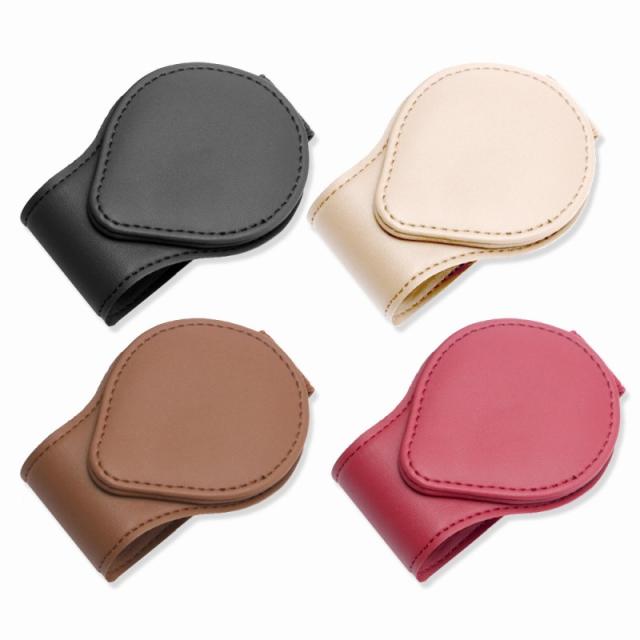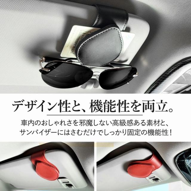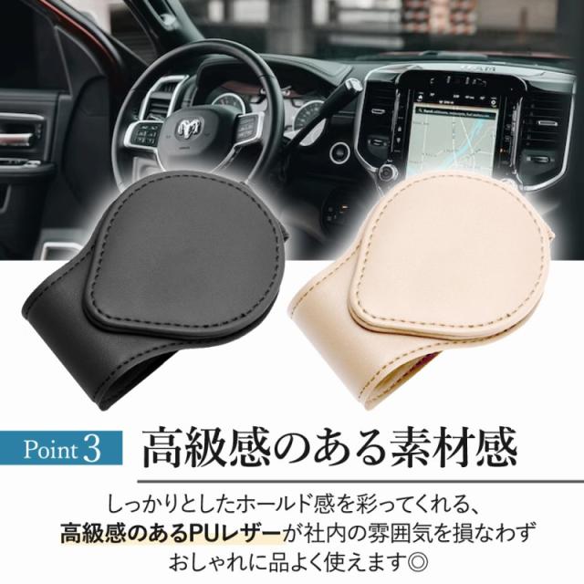 メガネホルダー カードホルダー サングラスホルダー 車載 車用 収納 サンバイザー メガネクリップ マグネット式 レザー