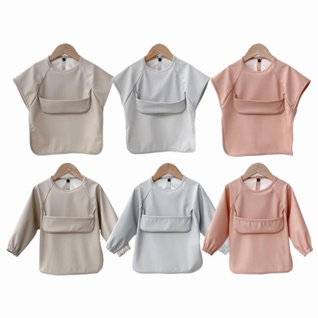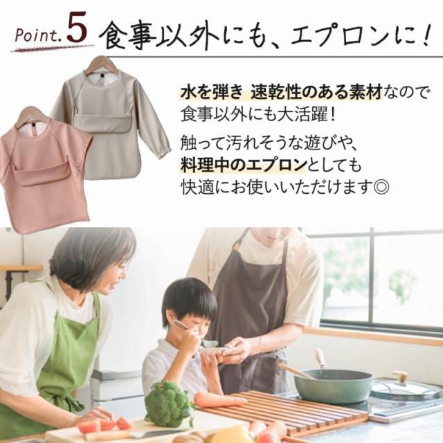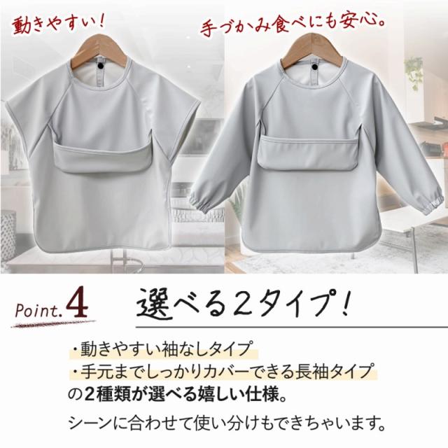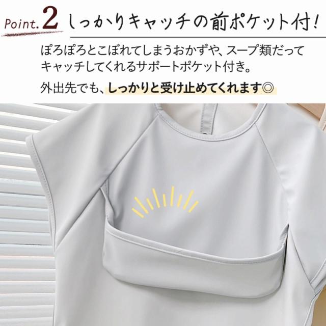 | 商品の説明 | どんなに気をつけても、食事やおやつ中食べこぼしてテーブルや床、お洋服が汚れることありますよね。 ぽろぽろとこぼれてしまうおかずや、スープ類だってキャッチしてくれるサポートポケット付きのお食事スタイ。 外出先でも、しっかりと受け止めてくれます◎ 元気に動き回るお子様でも、大丈夫。 さっとワンタッチで留められるスナップボタンなので、時間短縮かんたん装着可能。 汚れがシミにくくて、水を弾いてくれるPU素材は 肌触りがよく、お洋服をきちんと守ってくれます! ・動きやすい袖なしタイプ ・手元までしっかりカバーできる長袖タイプ の2種類が選べる嬉しい仕様。 シーンに合わせて使い分けもできちゃいます。 汚れを気にせず、作業や食事が楽しめる。 選択しても乾きやすいので、旅行やちょっとした外食にも便利に使えます◎ |