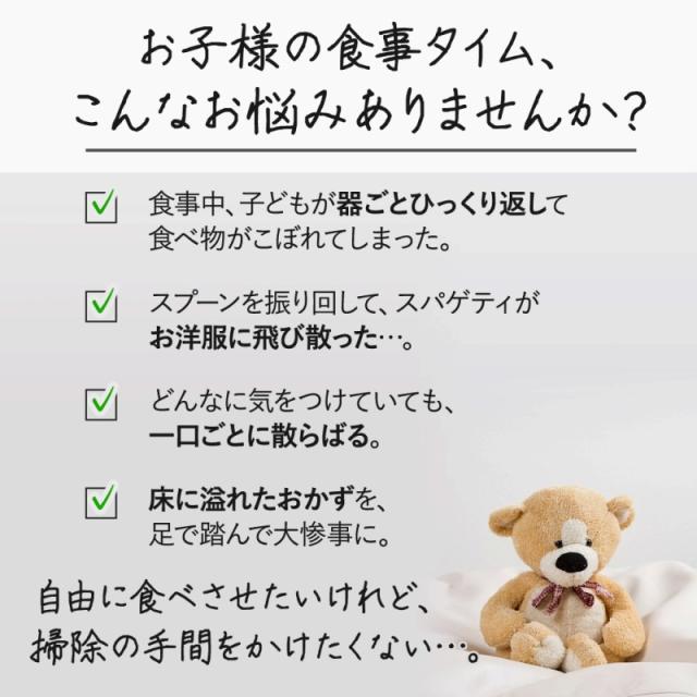 どんなに気をつけても、食事やおやつ中食べこぼしてテーブルや床、お洋服が汚れることありますよね。