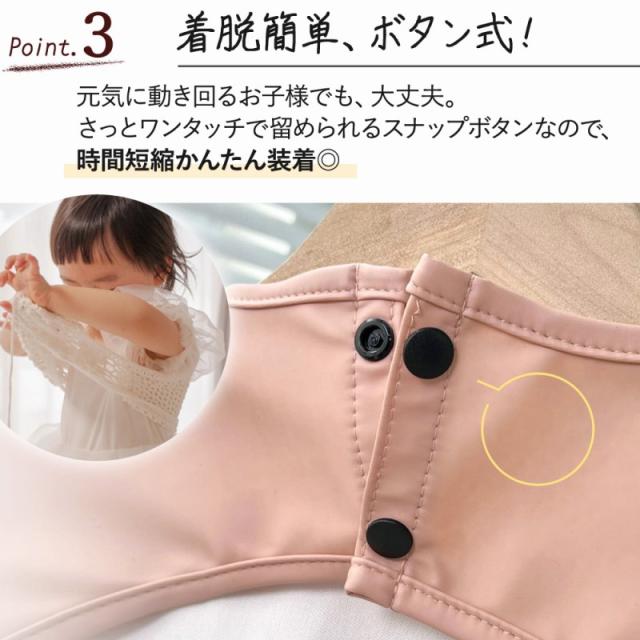 ワンタッチで留められるスナップボタンなので、時間短縮かんたん装着可能。