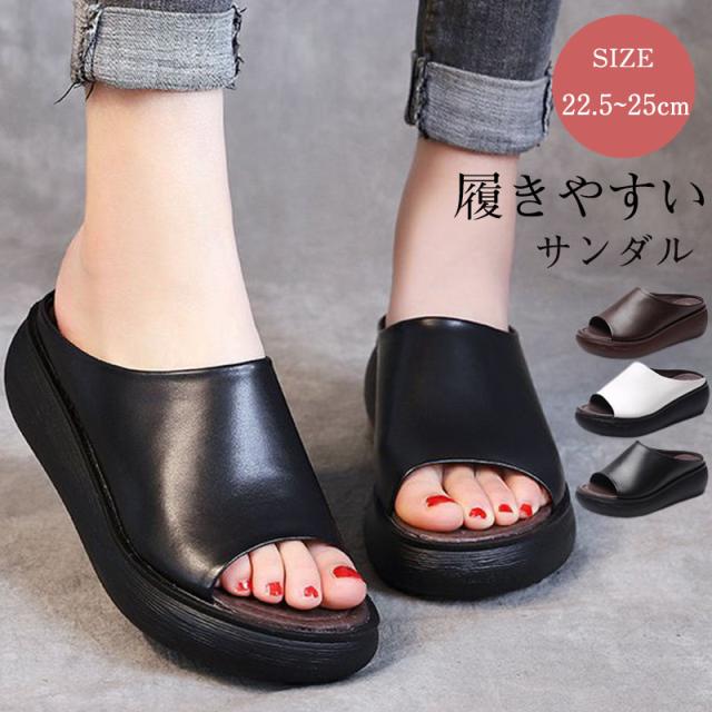 サンダル レディース ミュール 厚底 サマーサンダル シンプル ウエッジソール カジュアル 歩きやすい おしゃれ コンフォート お