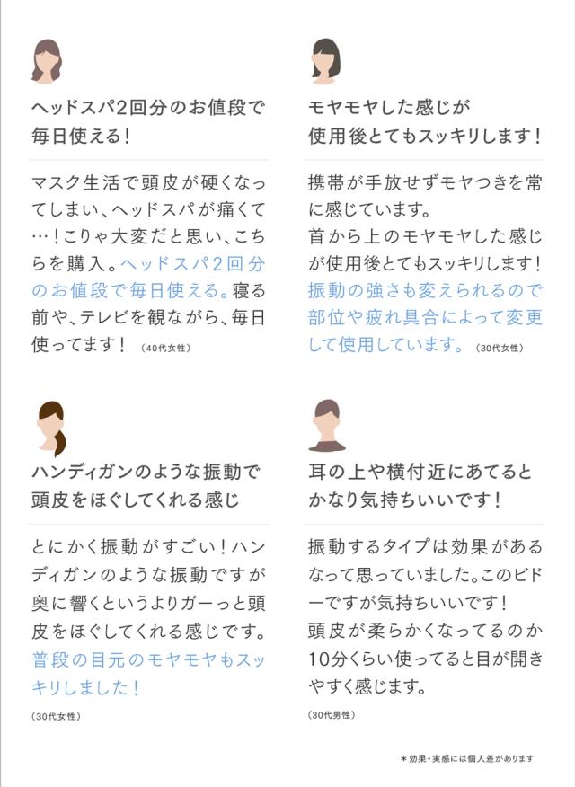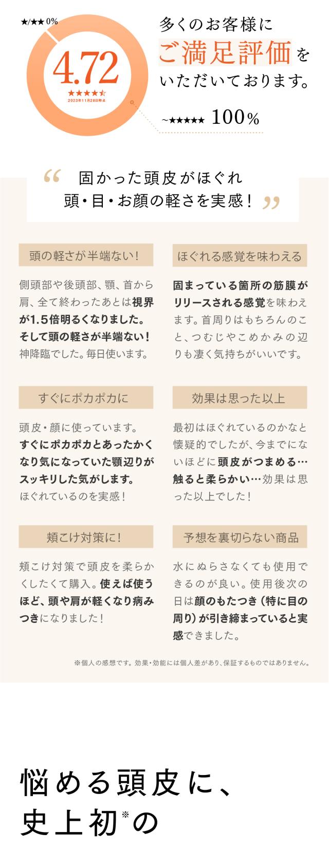 - 首肩などのマッサージ機はよくありますが、頭皮マッサージは初めて知ったので購入してみました。 使いやすく、かなり気持ちがいいです。ヘビーユーザー間違いないです。