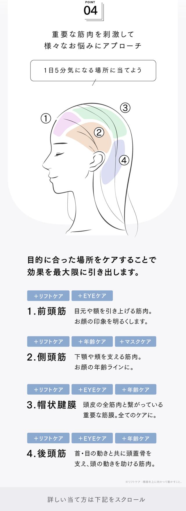 ● リフトCARE(※):気になる年齢肌に ※機器を上に向かって動かすこと。