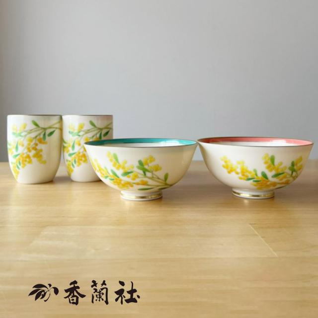 香蘭社 ミモザ 睦揃 有田焼 茶碗 セット 日本製 ペア おしゃれ 湯呑 湯呑み 湯飲み 湯のみ ゆのみ 湯呑みセット 内祝い 結婚内祝い 還暦内祝い 粗供養 満中陰志 記念品 母の日 敬老の日 【伝統工芸・ 陶器の和遊感】