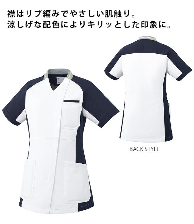ミズノ スクラブ ファスナースクラブ MZ-0401 レディース 女性 半袖 透け防止 制電 制菌 イージーケア ストレッチ ユニフォーム 医師 医療用 白衣 クリニック ナース 看護師 術衣 白スクラブ ジップタイプスクラブ リハビリ 介護