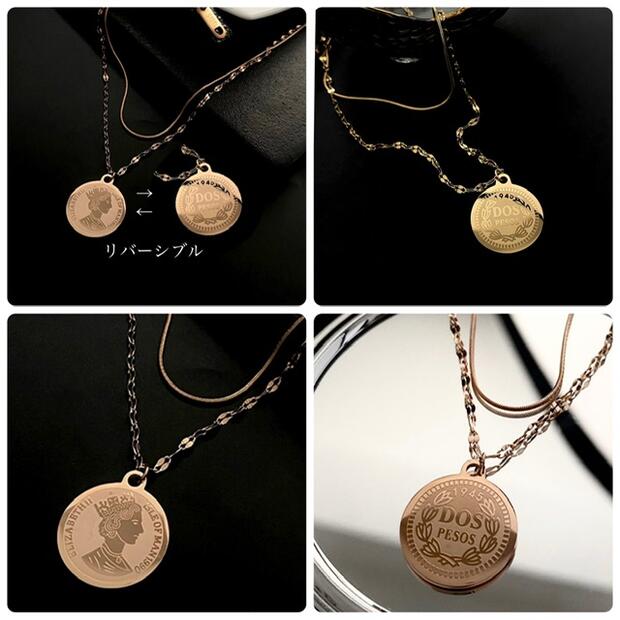 つけっぱなしok サージカルステンレスネックレス 2連チェーン スネーク/ペタルチェーンリバーシブル メタル ネックレス 18金 コーティング アレルギー 対応 ネックレス
