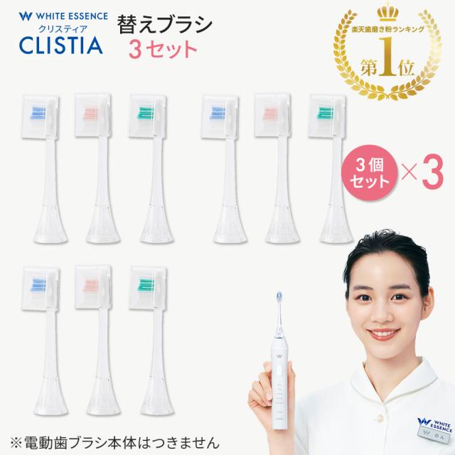 電動歯ブラシ ホワイトエッセンス クリスティア 替えブラシ 3個入り×3 ホワイトニング 音波ブラシ 音波式 虫歯 予防 歯周病 口臭 対策