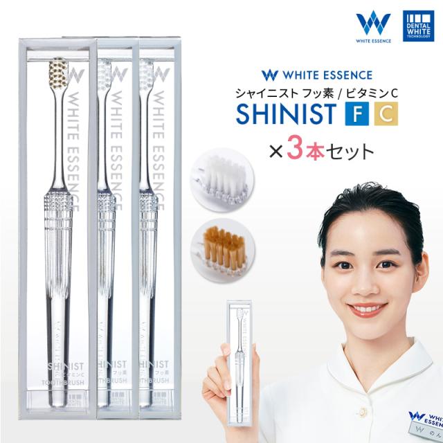 歯ブラシ ホワイトエッセンス シャイニスト 3本セット フッ素 ビタミンC 配合 ホワイトニング 虫歯 予防 歯周病 口臭 対策 ブレスケア ステイン
