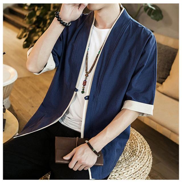 カーディガン メンズ 甚平風 薄手 五分袖 メンズ アウター 綿麻 羽織 トップス 上着 カジュアル コーデ おしゃれ 夏 お祭り