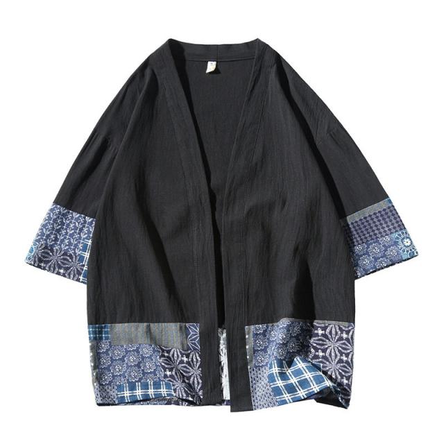 カーディガン 羽織 メンズ 甚平風 ジャケット 浴衣 カーディガン 切替 薄手 夏 サマー 七分袖 和服風 花火大会 お祭り おし