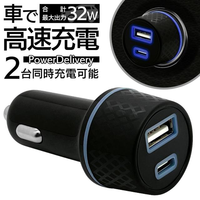 【送料無料】 充電器 車 カーチャージャー DC充電器 タイプC PD PPS対応 パワーデリバリー タイプA 合計32ワット ハイパワー 急速充電 高速充電 Type-C typec Power Delivery Type-A 合計32W ブラック iPhone スマホ スマートフォン iPad タブレット RDCCA32W01BK ラスタバナナ