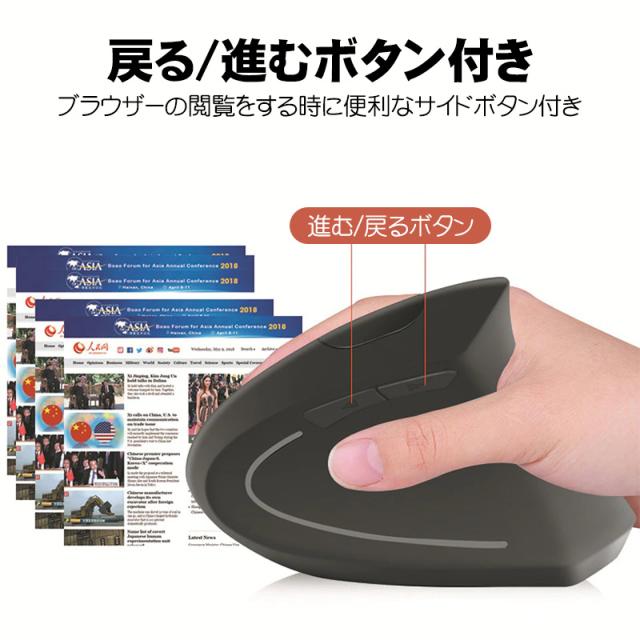 ワイヤレス 縦型マウス エルゴノミックマウス 人間工学設計 2.4GHz無線接続 静音 DPI調整可能 800 1200 1600 垂直式マウス 乾電池式 多ボタンマウス 疲れにくい 腱鞘炎防止 USBレシーバー ワイヤレス接続 お洒落 【送料無料】