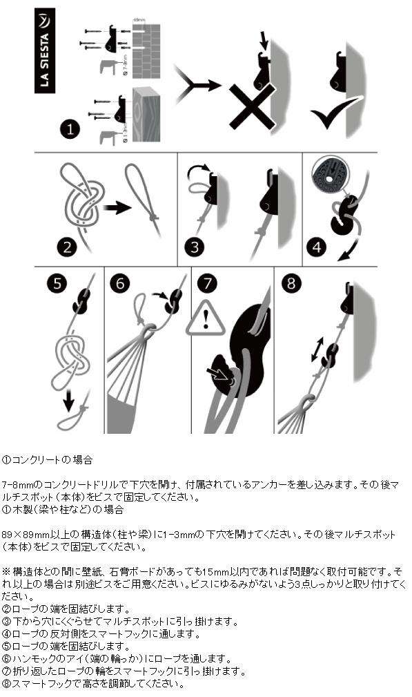 HR-H3 LA SIESTA ラシエスタ ハンモック用取付器具 室内外柱用ロープ
