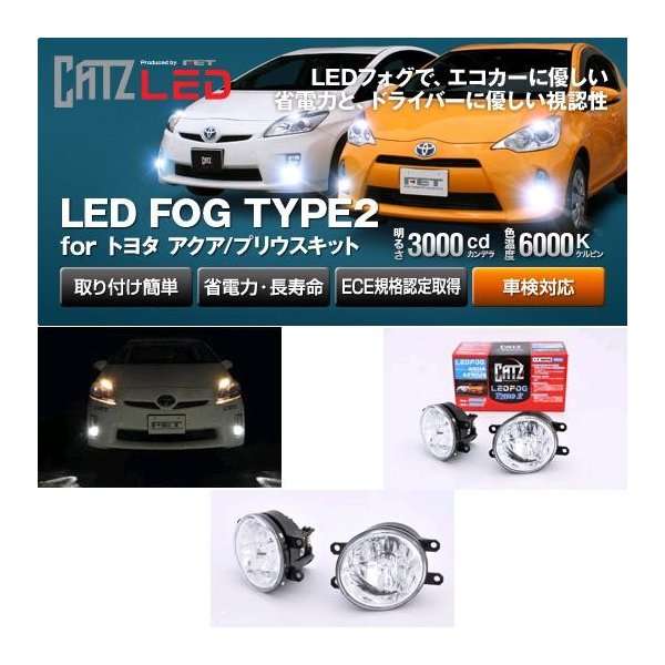 【送料無料(沖縄・離島を除く)】FET CATZキャズ AKA14A LED FOG TYPE2 for アクア/プリウスキット 6000k【お取り寄せ商品】【LEDフォグランプ FOG 】