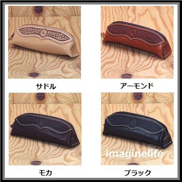 イタリアンレザーとレザーカービングのファスナーペンケース。