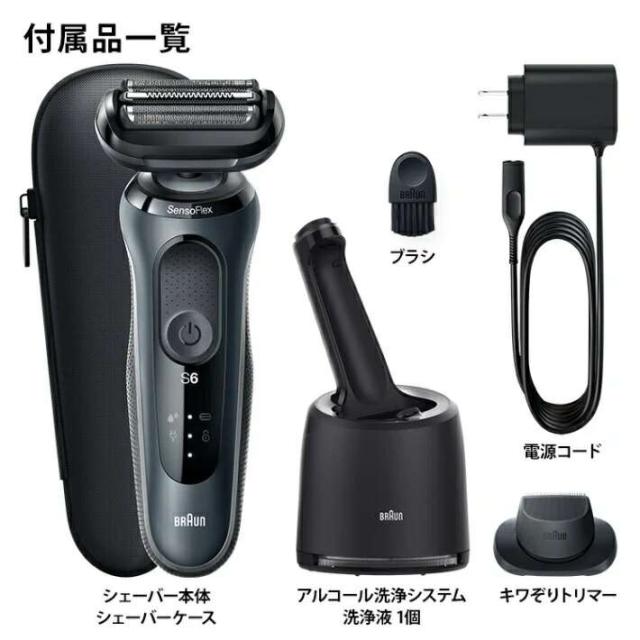 ・付属品:アルコール洗浄システム、洗浄液カートリッジ1個、キワぞりトリマー、シェーバーケース、掃除用ブラシ、電源コード