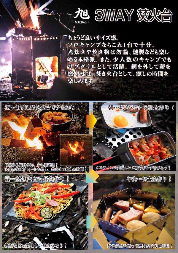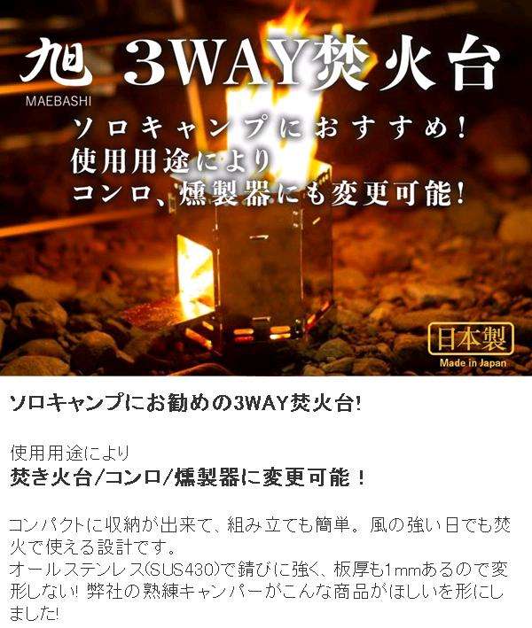 ASA-10 ASAHI MAEBASHI 3WAY 焚き火台 日本製【アウトドア キャンプ コンロ ソロキャンプ 焚き火 焚火 料理 焼き肉 燻製器】