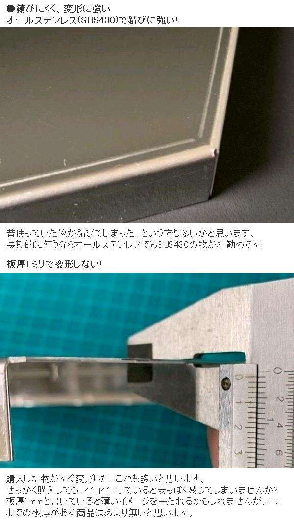 ・板厚1mmと書いていると薄いイメージを持たれるかもしれませんが、ここまでの板厚がある商品はあまり無いと思います。