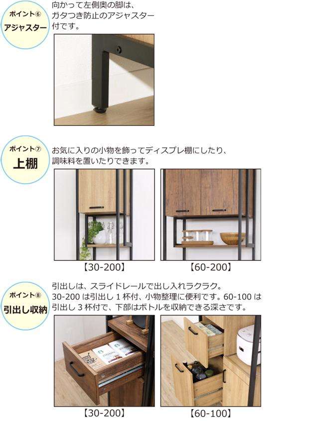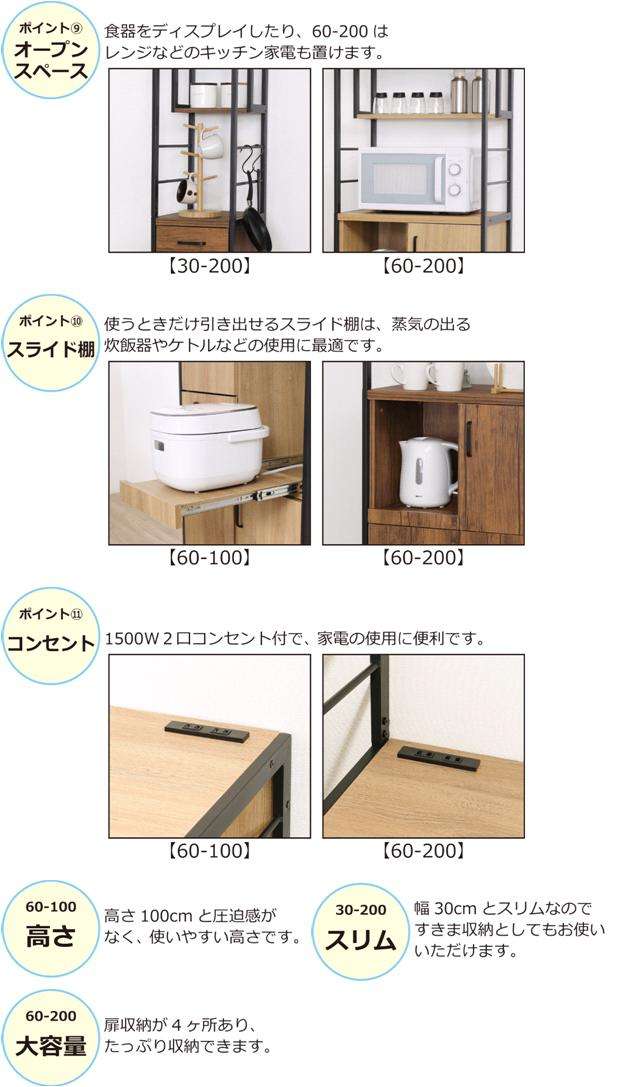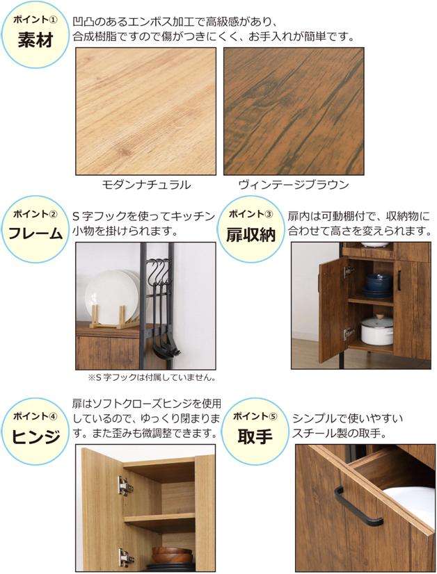 ■クロシオ 23378 アート 食器棚 60-100 モダンナチュラル