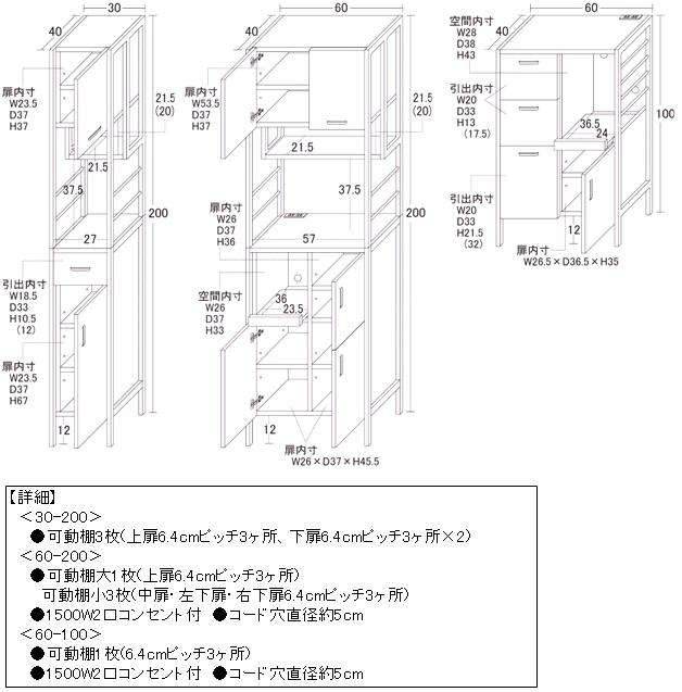 ・可動棚小3枚(中扉・左下扉・右下扉6.4cmピッチ3ヶ所)