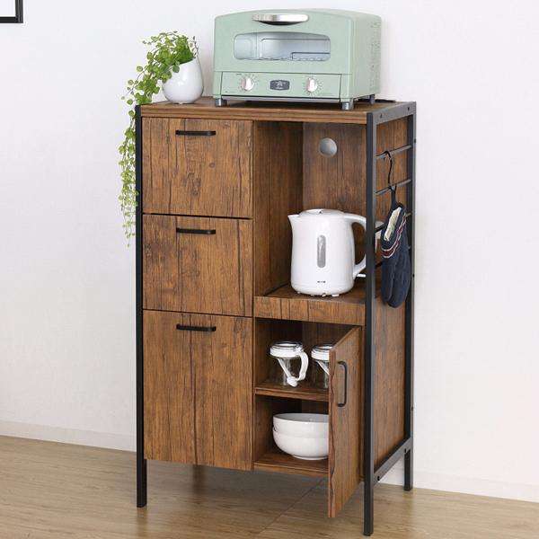 クロシオ 23376 アート 食器棚 60-100 ヴィンテージブラウン【送料無料(北海道・沖縄・離島を除く)】【組み立て式】【メーカー直送】【同梱/代引不可】食器棚 キッチンボード