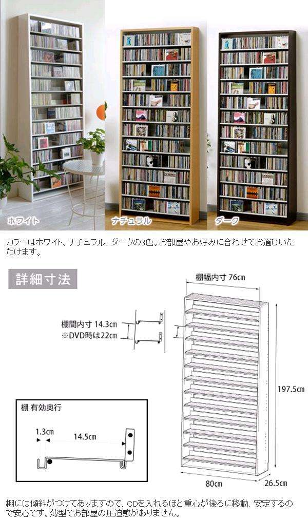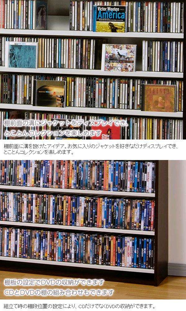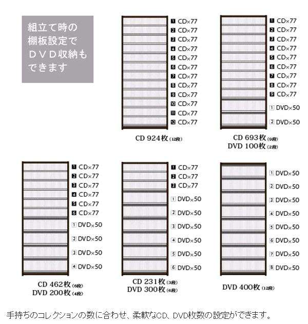 ◇組立て時の棚段位置の設定により、CDだけでなくDVDの収納ができます。